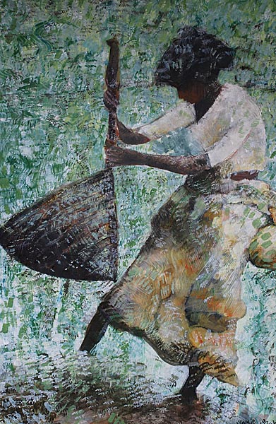 Le panier. Peinture Acrylique. Recherche de mouvement et de tons différents. Vendu.